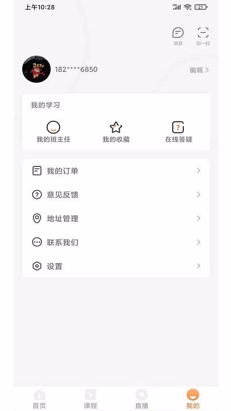 5、在我的页面里,用户可以选择班主任、在线答疑、订单、地址管理等功能进行使用