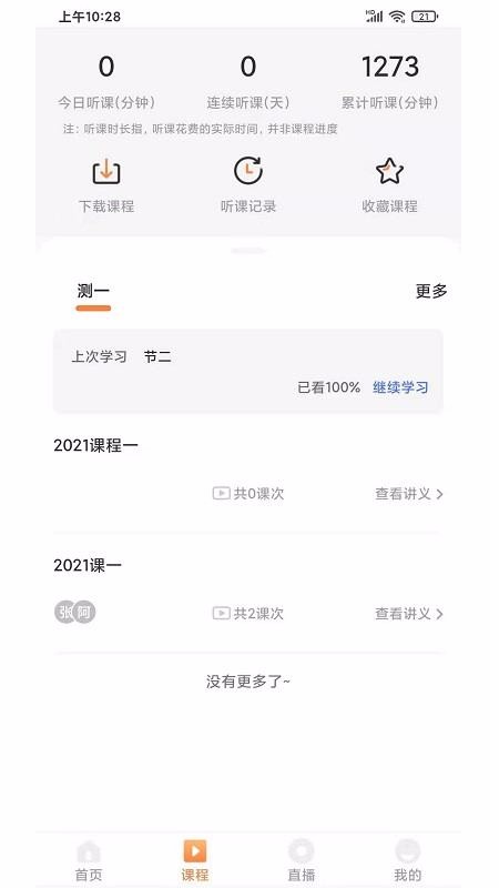3、自动统计并展示了今日听课时长、连续听课天数和累计听课分钟数;