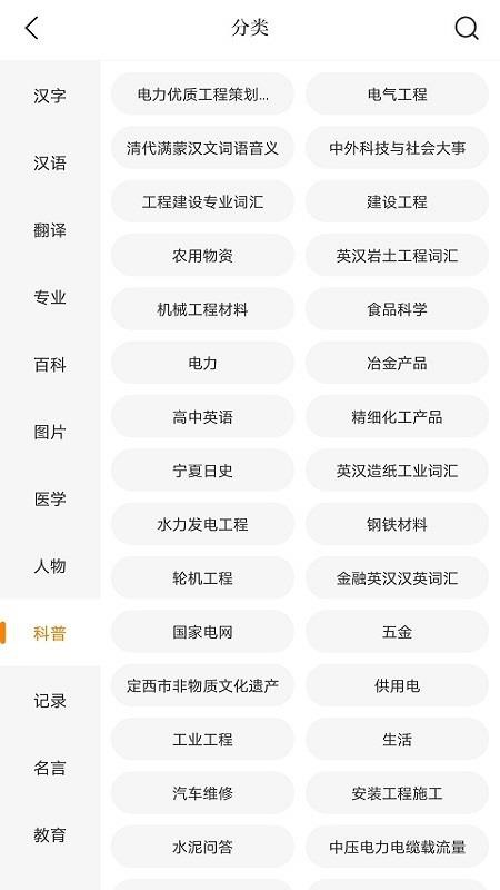 1、展示详细的知识分类信息,有人物、医学、图片、百科、记录等等,丰富多言的内容;