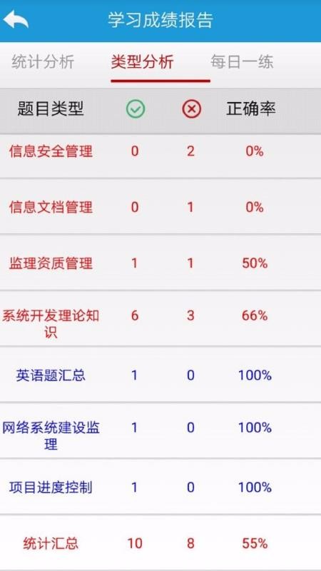 5、提供了学习成绩报告,为用户展示了类型分析、统计分析等,可以了解薄弱的知识点;
