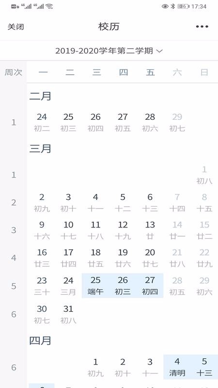 5、一目了然的校历页面,校历中心向用户展示了清晰的日历视图,还显示各种节假日安排;