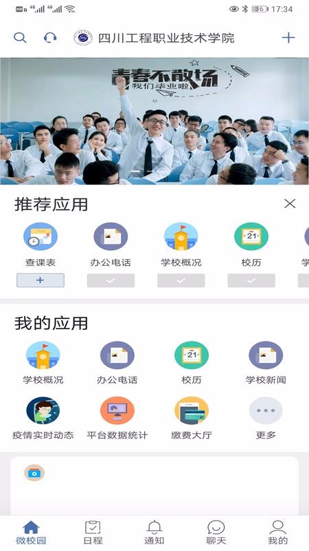 1、丰富的推荐应用,主页设置了推荐应用栏并展示查课表、办公电话以及校历等应用;
