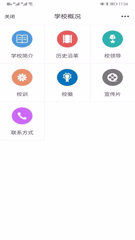 3、提供众多学校概况划分内容,里面有学校简介、历史沿革、校训以及校徽等内容;