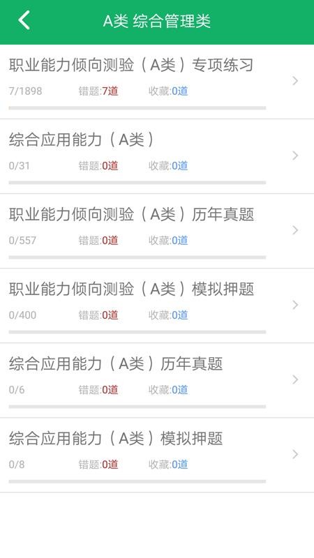 6、以列表的形式展现了各种类型的题目,便于用户选择答题;