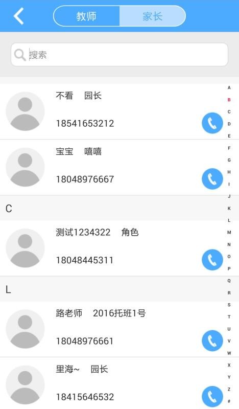 5、提供电话拨打功能,用户可以一键拨打各个教师和家长的电话,轻松联系;