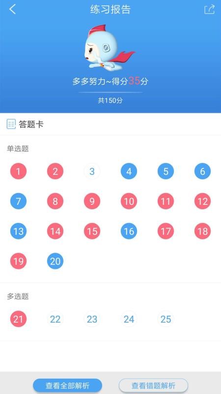 5、打开练习报告,查看自己的得分情况,反复对各个错题进行练习