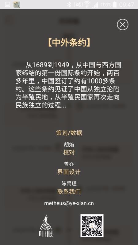 中外条约app详尽收录了从清朝到近代史上的各种中外条约文件内容,从1689年到1949年,每一份条约都以时间作为节点清晰的排序;用户可以在该平台上学习了解中国与西方签订的条约时间与背景,通过阅读查看里面的这些条约信息可以不断积累自己的历史知识,让用户能在历史知识板块中加深对中外条约方面的记忆,同时还能在这些条约中知道从清朝到近代,中国是如何与西方国家牵连,和这些国家的关系等情况;上面的条约展示了中国从独立大国走向半殖民地处境的历史进程,也展示了从半殖民地再次走向独立的过程,它时刻警醒着中国人勿忘国耻。