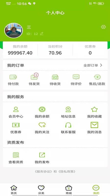 5、进入我的专区中,实时查看余额数据和积分数据信息,了解订单的情况