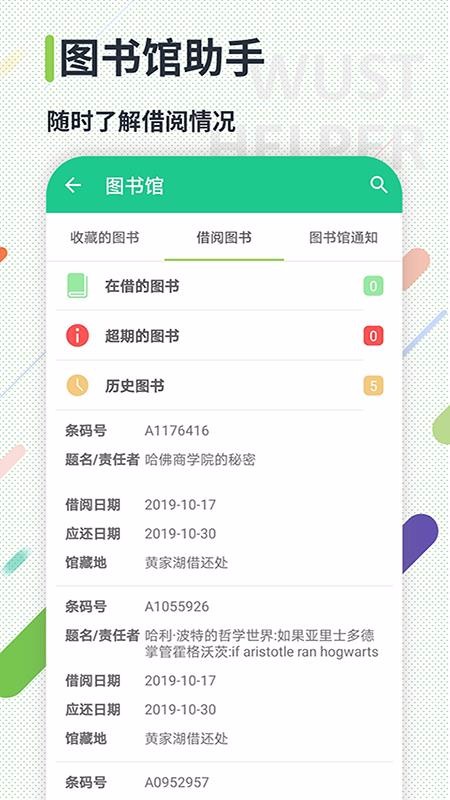 5、便捷的图书馆服务中心,里面划分了收藏的图书、节约图书以及图书馆通知内容栏目;