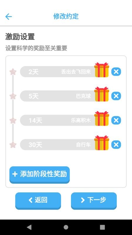 6、在激励设置界面中,可自由的对打卡的阶段性奖励进行设置