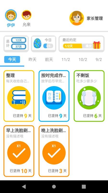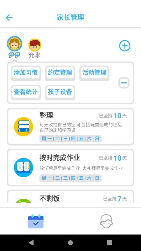 6、可添加多个孩子进入,让家长能够同时为多个孩子养成良好的习惯;