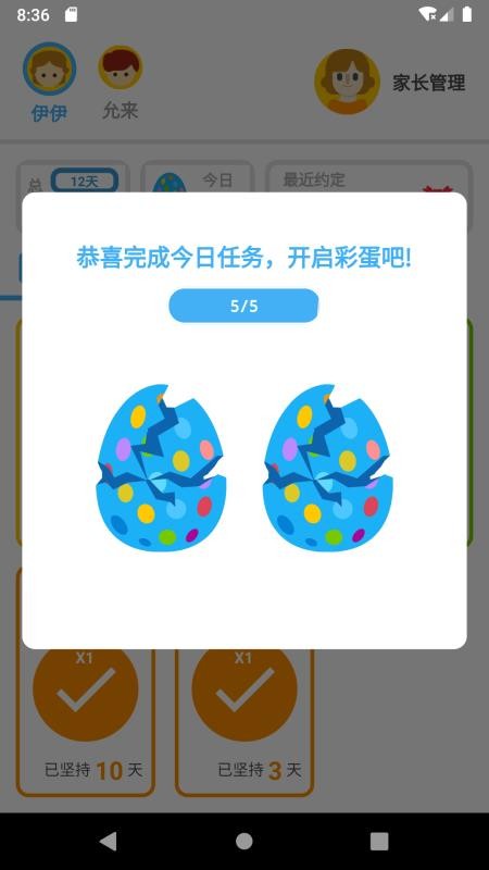 1、每日彩蛋,完成当日所有任务后,可开启彩蛋,进行家庭活动;