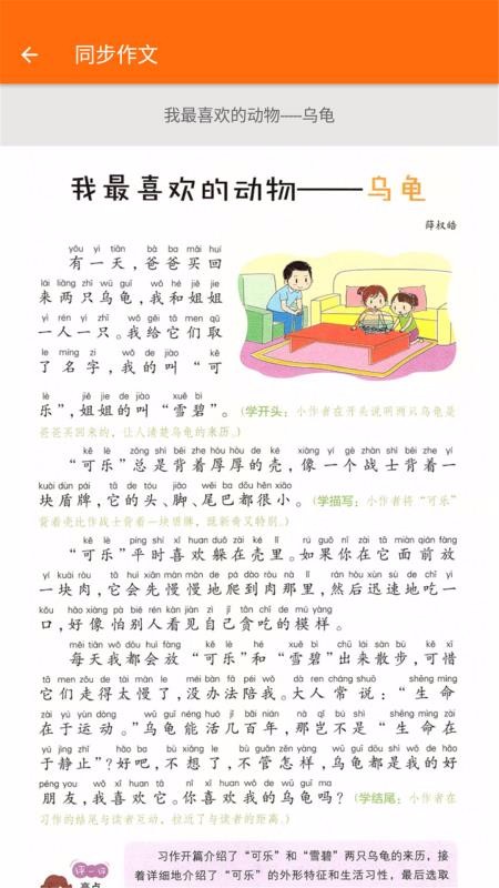 4、提供了同步作文,查看作文内容后,就可以了解标注的写作方法、内容介绍等;