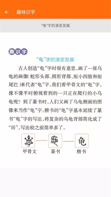 2、提供了趣味识字,选择汉字就可以查看展示的古今演变过程;