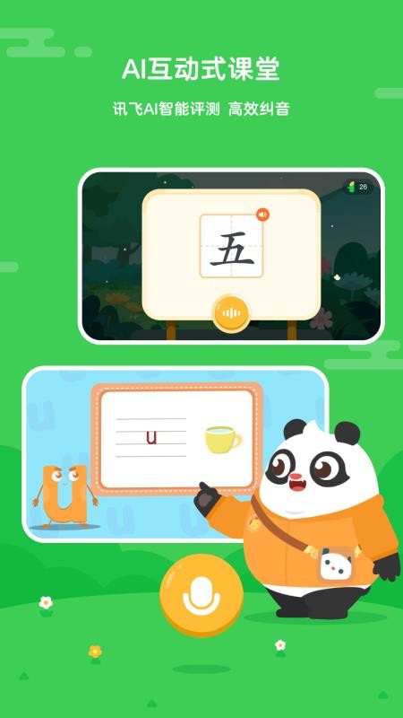 3、互动课程学习,智能检测孩子发音的情况,录制孩子音频评测;