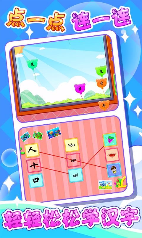 2、设置了多种不同的游戏场景,不仅设置丰富的汉字学习游戏,同时还设置了不同的游戏背景画面;