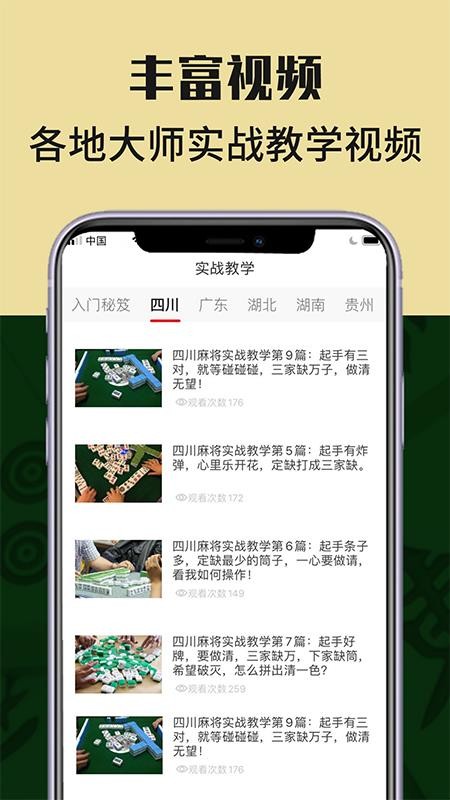 3、四川麻将,拥有众多四川麻将的实战教学,可迅速的观看;