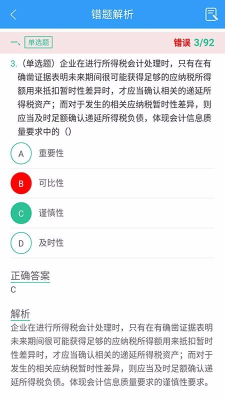 2、支持错题重做,并查看提供的错题解析,了解正确答案、涉及的知识点等;