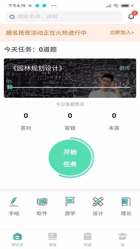 3、在知识点页面中,为用户展示了练习任务、做题数据、设计、理论、手绘等信息