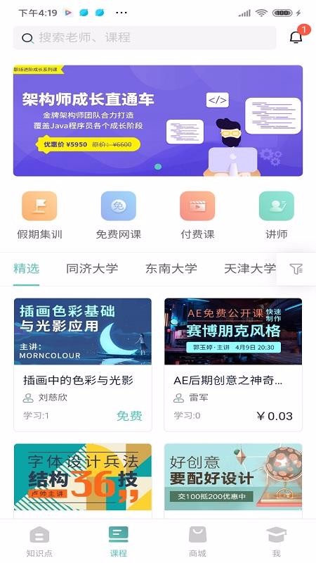 1、拥有各种形式的线上课程,比如免费网课、付费课等,也涵盖了线下课程;
