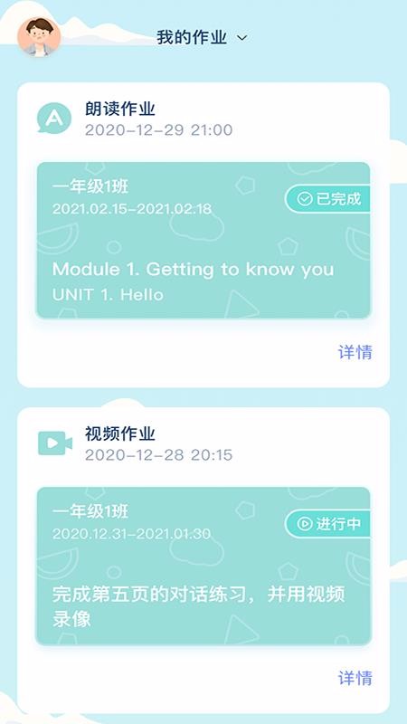 5、作业形式多样,视频作业、朗读作业等,完成流程简单,易操作;