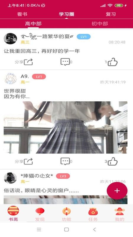 2、应用中有初中部和高中部两个学习圈,用户可以根据自己当前的阶段进行选择;