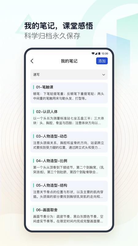 6、课堂感悟随时记,自动保存归类,帮助学生更好的进行学习;