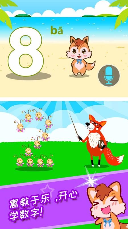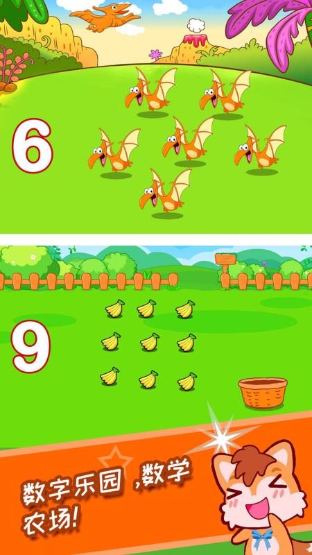 宝宝数字王国是一个儿童学习软件,结合各类游戏和动画场景,让儿童实现趣味学习;相应的平台中也汇集了各种数学内容,包括了0-10数字的写法、读法等,让儿童在玩乐的同时,可以认识更多数字,并达到学习的目的;并且软件中提供了丰富的场景和角色,比如数字乐园、数字农场、动物园等,也包含了超多动物角色和卡通角色,全面的丰富了软件画面,也结合各类背景音乐,可以全面的吸引儿童的兴趣,让宝宝爱不释手;所以,相关家长可以下载该软件在手机中,让自己的孩子实现数字学习,也让孩子开心完成学习。