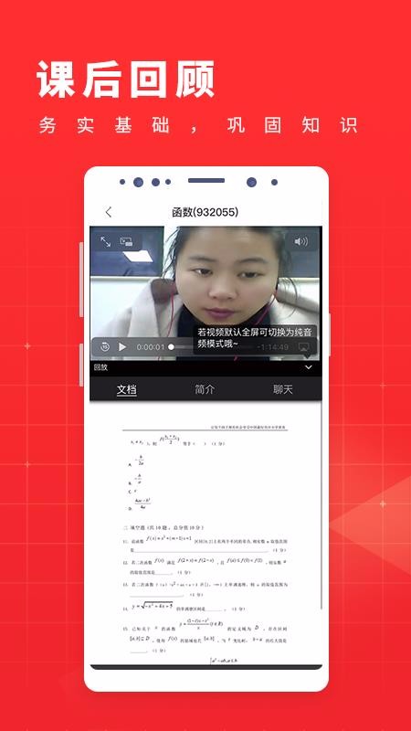 4、提供了多种课后巩固模式,比如观看回放、收听音频、观看上课文档等;