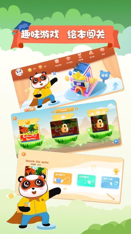 斑达云课是一个好用的英语启蒙教育软件,专门为3到12岁之间的儿童打造,针对该年龄阶段的儿童心理特征提供相应的教材资源和教学方法;上面采用了阅读形式的教学方式,给小孩们提供了众多的学习绘本资源,在阅读过程中还插入的各种重要知识点学习内容,更有各种趣味的阅读插图来提升儿童的学习兴趣,通过不断的阅读学习能提高小孩的英语运用能力,积累基础的英语词汇和句子;里面的绘本内容还采用了情景互动模式,有精美的配图,还给学生提供了跟读练习模式,不仅能收听其中标准的音频,还能录入自己的声音跟读练习。