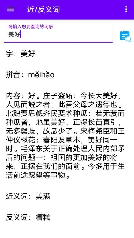 2、在线学习词语的近义词和反义词,可以实时了解不同汉语详细信息;