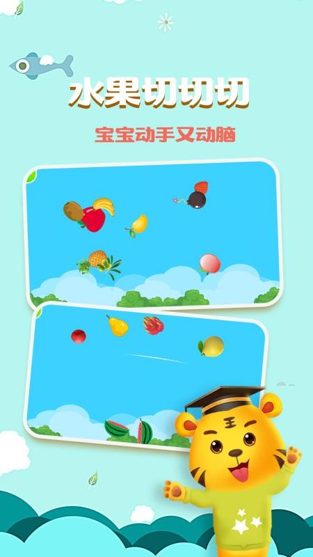 4、参与切水果的游戏,实时在线玩游戏,提高宝宝学习的兴趣;