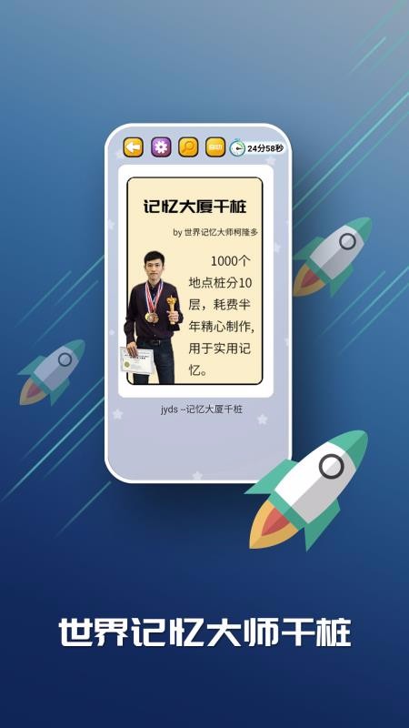 C族记忆宫殿是一个帮助用户训练记忆力的软件,结合各类记忆法,让用户便捷的完成学科学习,而且平台中汇集的学习内容丰富,涵盖了小学到大学的各种内容,相应的通过详细的分类展示了超多学习项目,比如有诗词经典、英语单词、文科记忆、理科记忆、工作考证等,可以满足多样化的学习需求,也适应了各种学习场景;而且结合游戏闯关的形式,让用户循序渐进的完成学习,并通过游戏排名、奖励等方式激励用户的学习兴趣,也让学习变得更加轻松;同时平台中的各类图片、内容都是经过精心编排的,也通过训练的形式帮助用户达到快速记忆的目的。