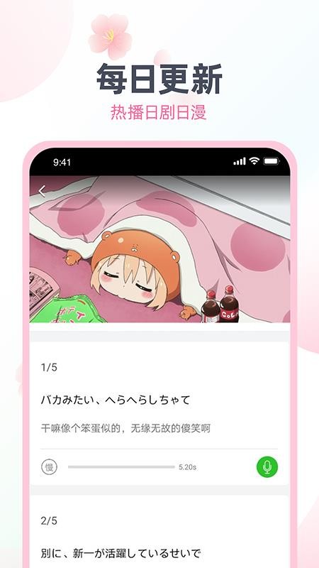 1、实时在线配音学习,根据有不同的台词,实时学习日语的发音;