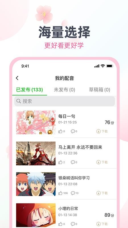 5、了解丰富多样的配音视频,可以在线观看其他人配音的情况,在线学习日语;