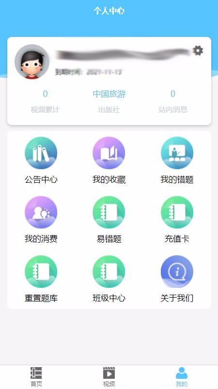 6、拥有丰富的个人主页功能,里面设置了公告中心、重置题库以及充值卡等功能;