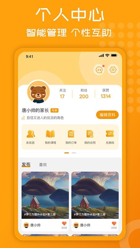 5、打开个人中心,查看自己的各个课程和订单信息,在线编辑资料内容