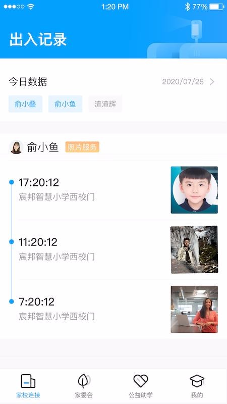5、实时跟进今日出入记录数据,在家校连接页面能实时跟踪小孩的出入记录;