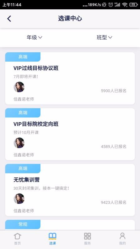 3、提供了选课中心,可以根据年级或班型筛选课程进行添加学习;