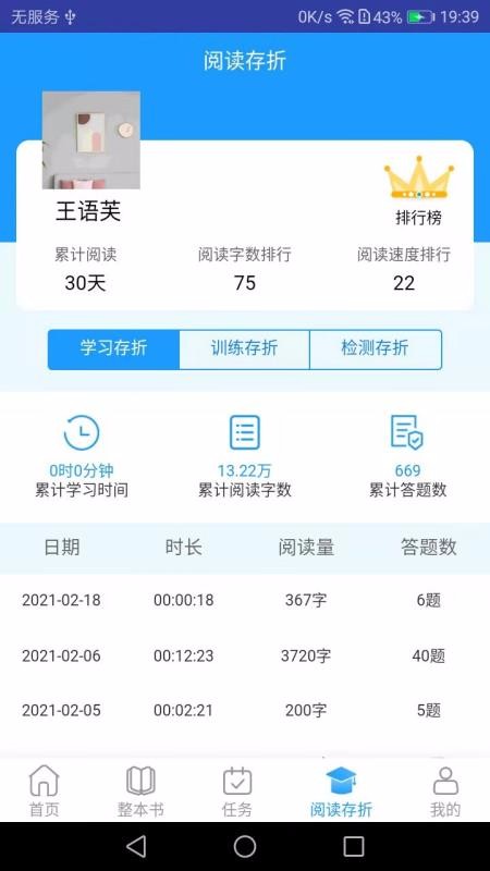 4、拥有贴心的数据统计功能,包括学习、训练、检测等统计,全方面了解阅读情况;