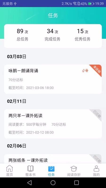 1、提供了各种速读任务,通过时间轴的形式展示了各任务,也标注了任务状态;