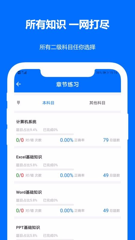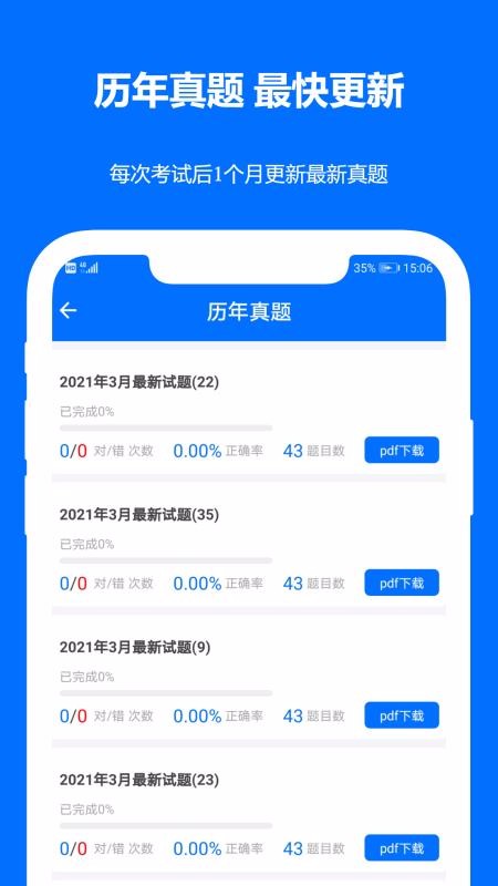 1、一目了然的题目练习记录,每套题上面都会展示该套题的对错题目、正确率以及题目总数等内容;