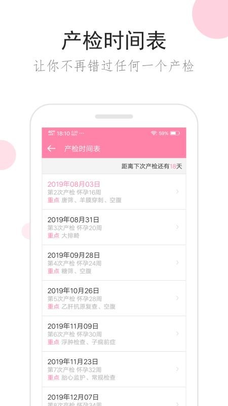 5、提供产检时间表,帮助用户更好的进行体检,更好的了解生产的时间;