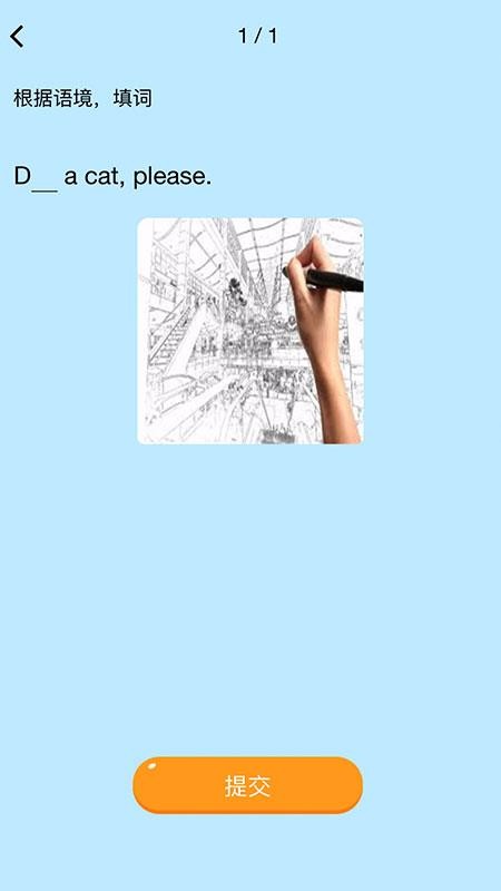 6、按照展示的英语句子,用户可以补充所差的单词,补全单词即可完成练习;