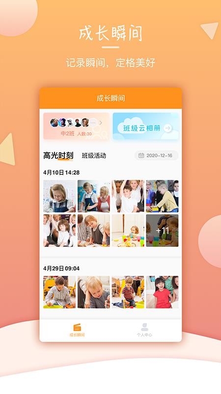 5、在成长相册页面,实时了解高光时刻和活动图片信息,与家长共享