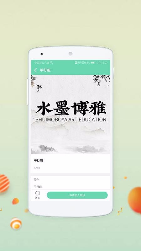 1、选择班级类型可以申请加入,也可以线上咨询关于该班级的信息;
