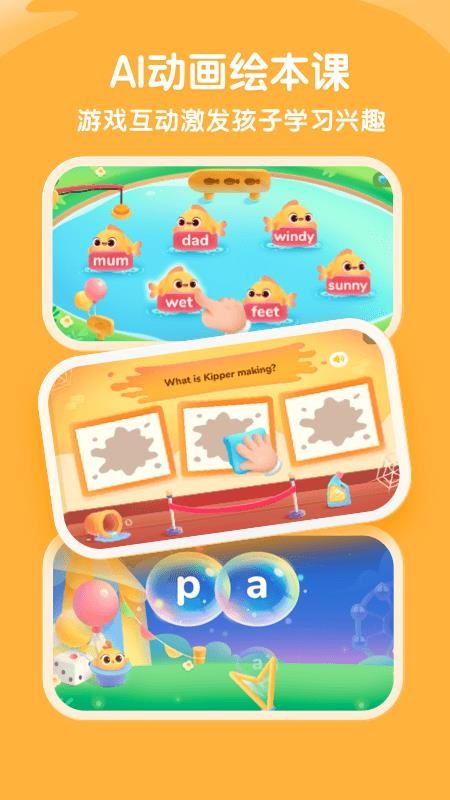 5、设置有很多AI 动画绘本课程,让孩子参与到互动课程中,通过游戏激发孩子学习的兴趣;