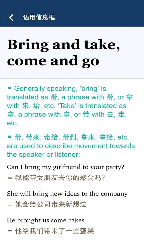 牛津外研英汉汉英词典是一款正版英汉汉英词典,这里收录了丰富的英汉和汉英词目,在学习英语的过程中,可以使用软件在线随时查词,查得率高,帮助用户快速理解和表达准确的英语单词,可以在英语学习、写作和翻译的时候使用,满足了用户学习的需求;并且可以了解英语单词时长搭配的信息,了解不同词性搭配的情况,准确的表达了英语的使用方法,提高英语学习,让用户可以精准的使用不同的英语;该软件为官方配套正版电子版本,可以随时随时使用,在手机中就可以立即查词,这样让学习更加方便,有需要的朋友赶紧下载使用吧。