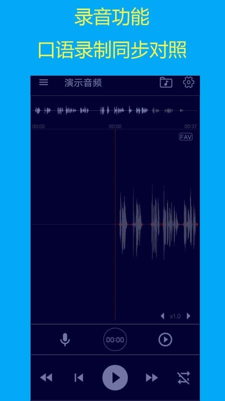 2、支持口语录音,同步和原始音频对比播放,了解更多的英语知识;