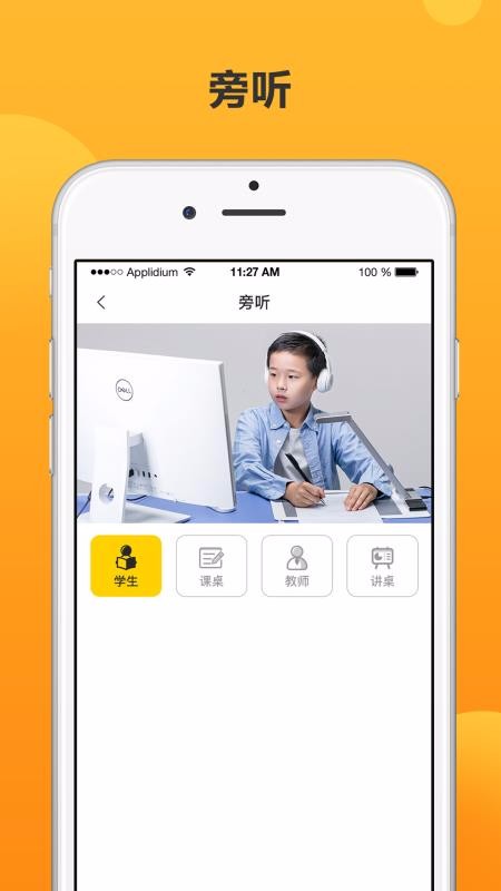 6、提供多种旁听切换画面选择图标,该页面设置了学生、课桌、教师以及讲桌不同的画面图标;